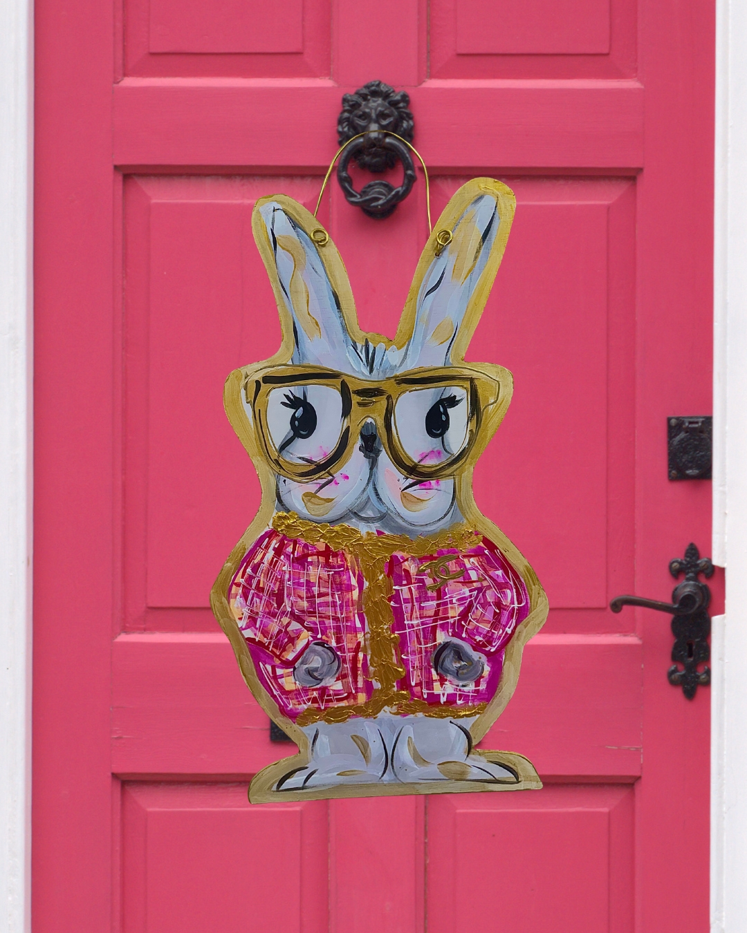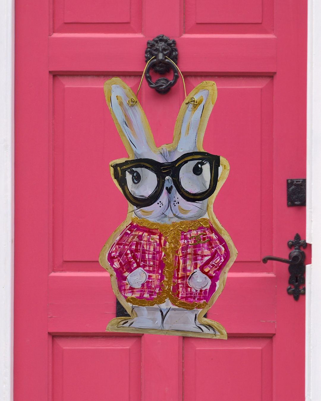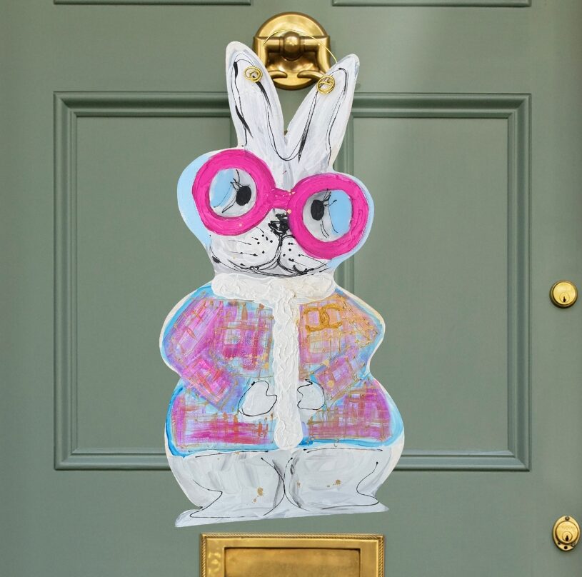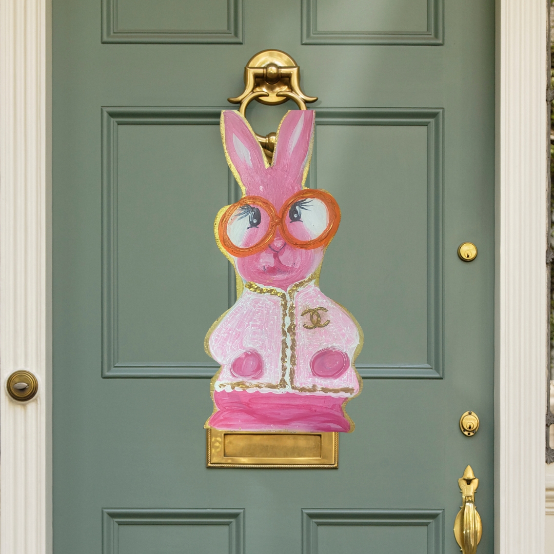 Spring bunny in a dashing Chanel coat with fun and bright glasses. Brings the perfect mixture of Easter fun and high-fashion luxe!